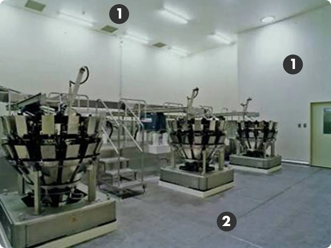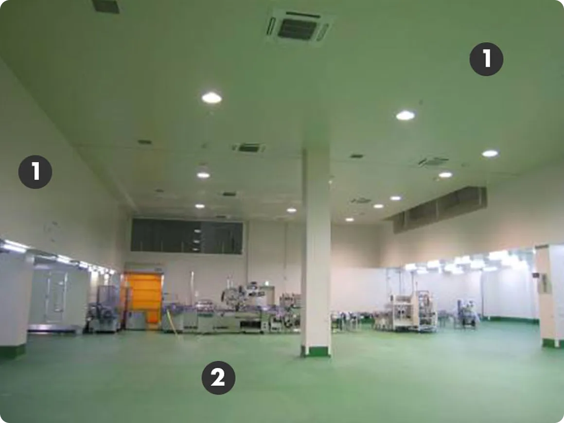 製造環境に適した各部屋の仕様選定が大切(床材、天井仕様、壁面)